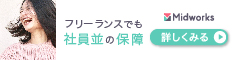 Midworksは正社員並みの保障がついたフリーランスサービスです。具体的には、フリーランス向けの賠償責任補償や健康診断優待のある「フリーランス協会」、freeeの無料利用や弁護士の無料紹介などの「税務保障」、「保険補助」、交通費や書籍代を支援する「経費補助」、映画やレストランが割引される「リロクラブ」への加入、ご参画中に案件と案件の間でブランクがあっても給与を保障する「給与保障制度(審査あり)」があります。